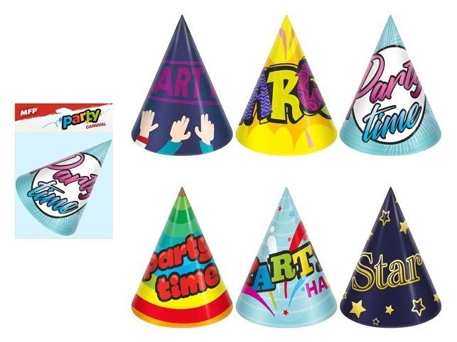 Narozeninový papírový párty klobouček. Karnevalový klobouček velice dobře drží na hlavě, díky kloboukové gumičce, kterou si dáte pod bradu. Udělejte radost oslavenci a uspořádejte velkou párty. Nezapomeňte koupit i frkačky a trumpety. BALENÍ OBSAHUJE: - 6 ks barevných kloboučků s různými párty motivy (viz obrázek) Výška kloboučku: 16 cm Obvod kloboučku 32 cm Délka gumičky: 36 cm VAROVÁNÍ: Nevhodné pro děti do 3 let. Nebezpečí vdechnutí a spolknutí malých částic. Uvedená cena je za 1 balení po 6 ks. Baleno v sáčku se závěsem.