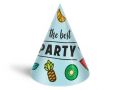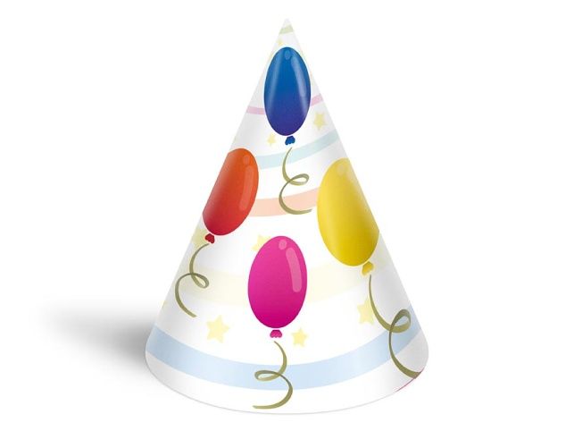 Narozeninový papírový párty klobouček. Karnevalový klobouček velice dobře drží na hlavě, díky kloboukové gumičce, kterou si dáte pod bradu. Udělejte radost oslavenci a uspořádejte velkou párty. Nezapomeňte koupit i frkačky a trumpety. BALENÍ OBSAHUJE: - 6 ks barevných kloboučků s různými motivy (viz obrázek) Výška kloboučku: 16 cm Obvod kloboučku 32 cm Délka gumičky: 36 cm VAROVÁNÍ: Nevhodné pro děti do 3 let. Nebezpečí vdechnutí a spolknutí malých částic. Uvedená cena je za 1 balení po 6 ks. Baleno v sáčku se závěsem.