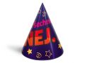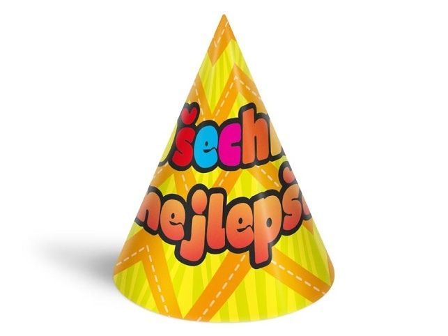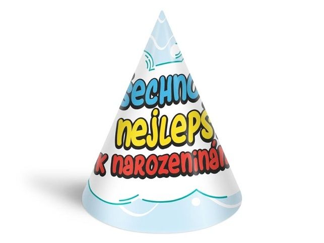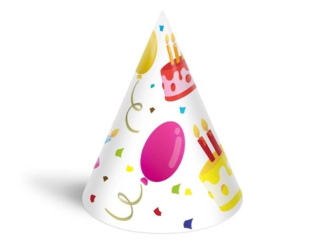 Narozeninový papírový párty klobouček. Karnevalový klobouček velice dobře drží na hlavě, díky kloboukové gumičce, kterou si dáte pod bradu. Udělejte radost oslavenci a uspořádejte velkou párty. Nezapomeňte koupit i frkačky a trumpety. BALENÍ OBSAHUJE: - 6 ks barevných kloboučků s různými párty motivy (viz obrázek) Výška kloboučku: 16 cm Obvod kloboučku 32 cm Délka gumičky: 36 cm VAROVÁNÍ: Nevhodné pro děti do 3 let. Nebezpečí vdechnutí a spolknutí malých částic. Uvedená cena je za 1 balení po 6 ks. Baleno v sáčku se závěsem.