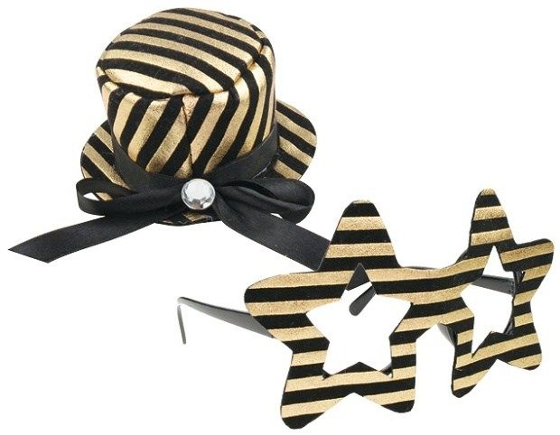 Klobouček na klipu 9 cm s brýlemi, zlatý