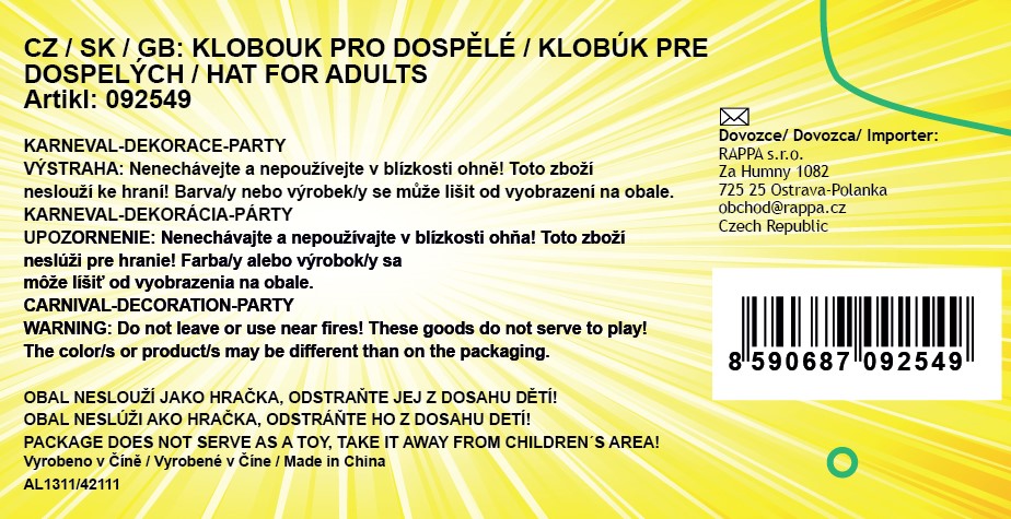 Elegantní buřinka pro dospělé! Tato černá stylovka je zdobena saténovou stuhou a koženkovým lemováním. Staňte se hvězdou karnevalového večírku díky tomuto nepřehlédnutelnému klobouku a ohromte tak všechny své přátele!