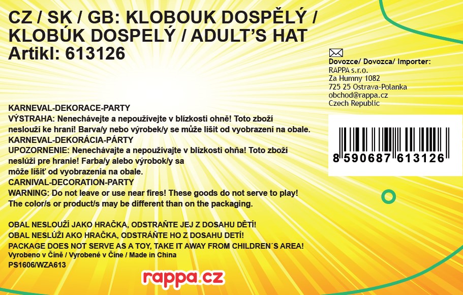 Karnevalový klobouk černé barvy zdoben barevnými magickými pavučinami je určen pro dospělé.