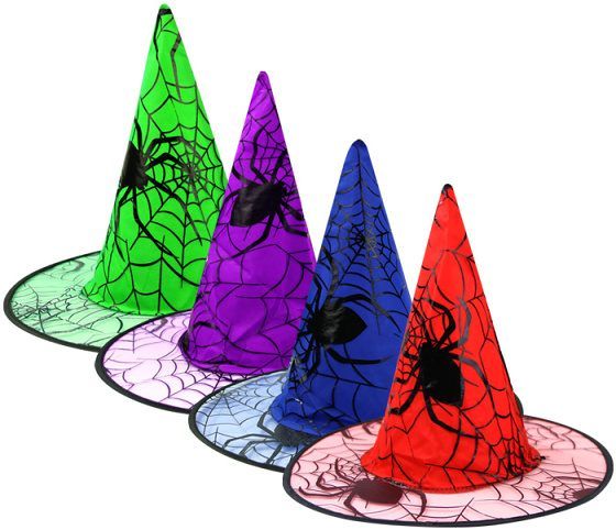 Čarodějnický klobouk vhodný na karnevaly- mix barev- výška: 34cm- průměr okraje: 38cm- průměr otvoru: 18cm