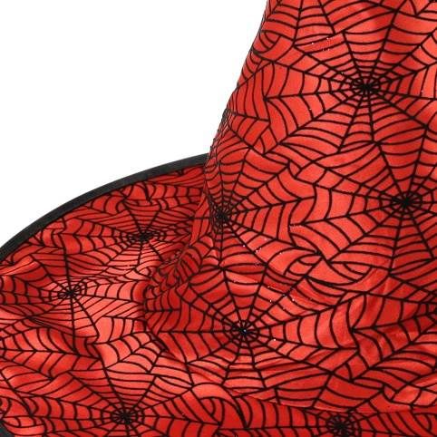 Kouzelný klobouk červené barvy zdoben černými magickými pavučinami je určen pro dospělé. Staňte se hvězdou halloweenského večírku díky tomuto nepřehlédnutelnému klobouku a ohromte tak všechny své přátele!