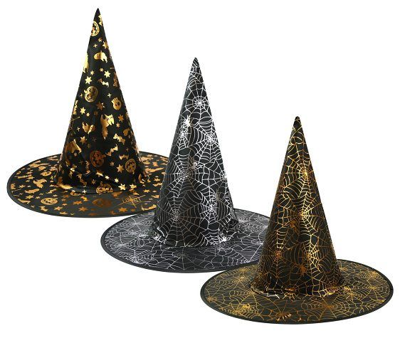 Čarodějnický klobouk vhodný na karnevaly- mix barev- výška: 34cm- průměr okraje: 38cm- průměr otvoru: 18cm