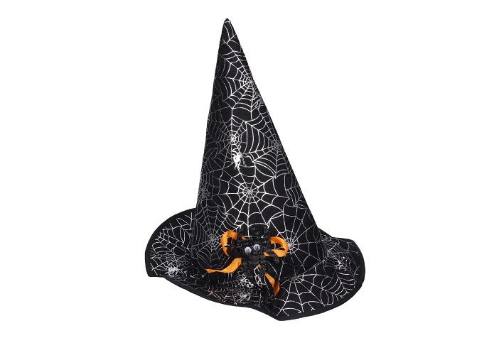 Černý klobouk s pavoukem a stříbrnými pavučinami bude skvělým doplňkem pro všechny malé čaroděje!