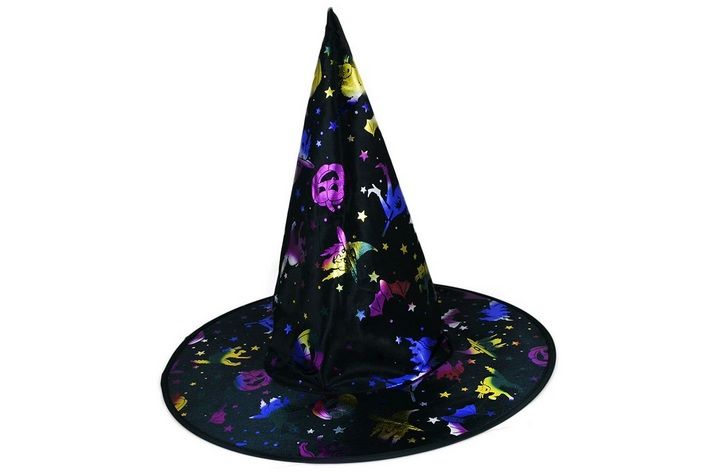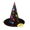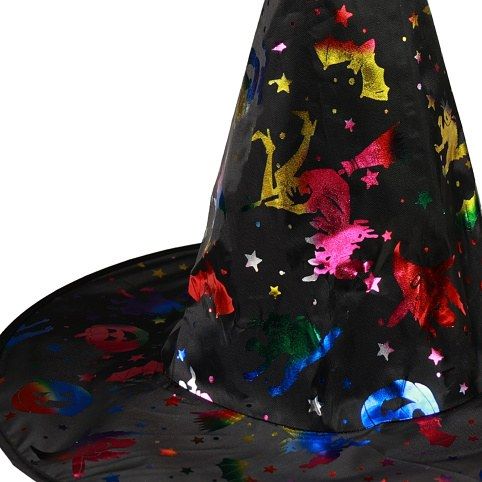 Čarodějnický klobouk pro dospělé! Klobouk černé barvy je vysoký 34 cm a zdoben barevnými magickými symboly. Staňte se hvězdou karnevalového večírku díky tomuto nepřehlédnutelnému klobouku a ohromte tak všechny své přátele!