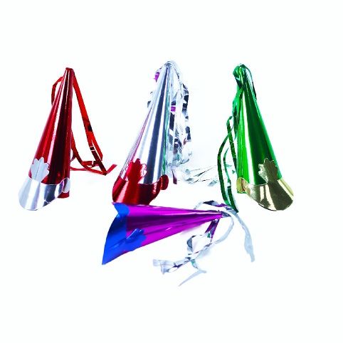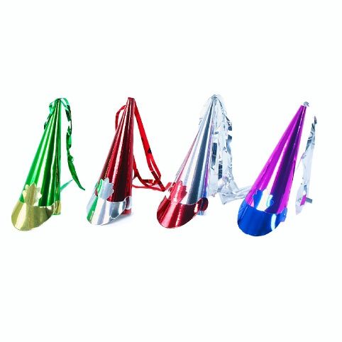 Barevné metalické papírové mini čepičky s kšiltem jsou senzačním doplňkem na oslavu, večírek nebo ples! Tyto veselé kloboučky na gumičku prodáváme v balení po 4 kusech. Velikost kloboučku cca 17 cm.