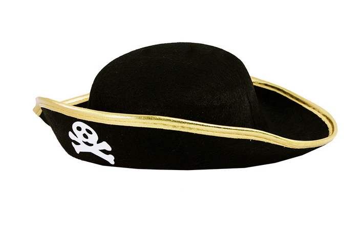 Tento černý elegán je zdoben bílým potiskem s motivem lebky na přední straně klobouku a zlatým lemováním.