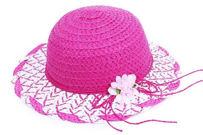 Parádní slaměný klobouk v růžovo-bílé barvě je určen pro malé parádnice. Klobouk je zdoben stylovou květinkou. Obvod klobouku je cca 53 cm.