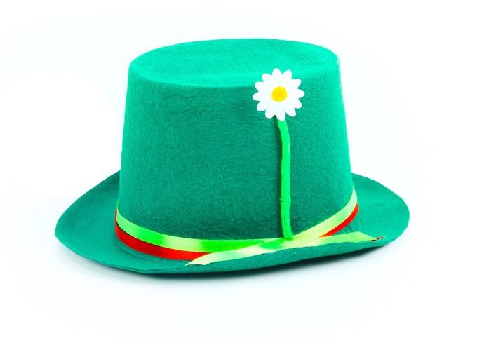 Chcete-li se proměnit v zeleného mužíka, kterému kape voda ze šosů nesmíte zapomenout na náš klobouk! Krásný zelený klobouk s květinou a stuhou skvěle doplní kostým vodníka.