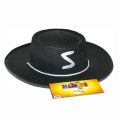 Senzační klobouk pro opravdického Zorra! Tento černý elegán je zdoben stříbrným nápisem Z jako Zorro a koženkovým lemováním.