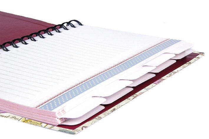 Každých 8 listů je rozděleno papírovým rozdělovníkem, který je možno si popsat druhem receptu.