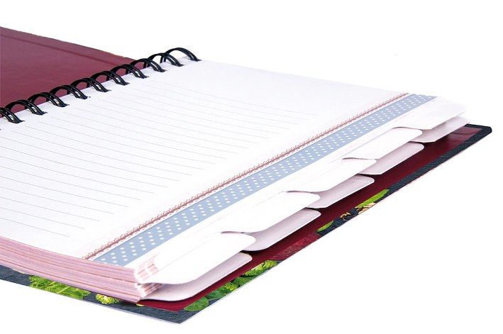 Každých 8 listů je rozděleno papírovým rozdělovníkem, který je možno si popsat druhem receptu.