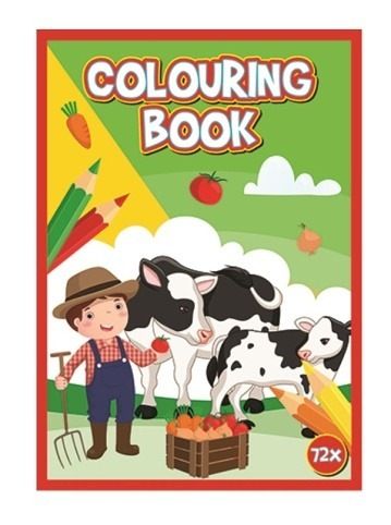 Nádherná kniha plná omalovánek. Celkem obsahuje 72 stran/obrázků k vymalování s motivem zvířat a nástrojů z farmy. Velikost strany je A4, tedy 29,7x21 cm