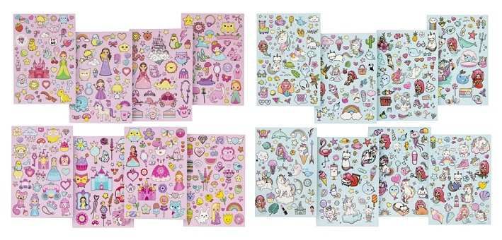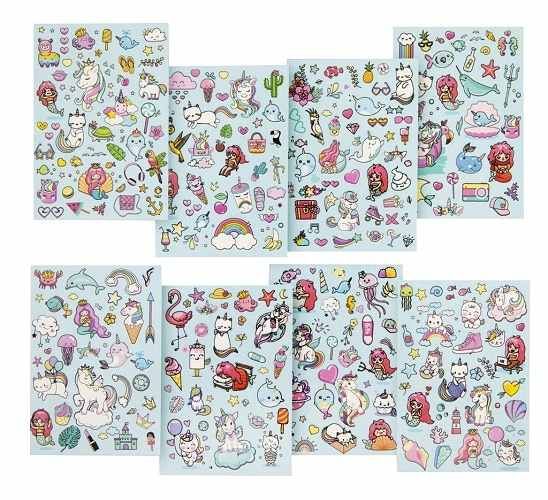 Kniha třpytkových samolepek Jednorožec, Mořská víla – A5 kniha obsahuje 8 listů s třpytivými samolepkami.