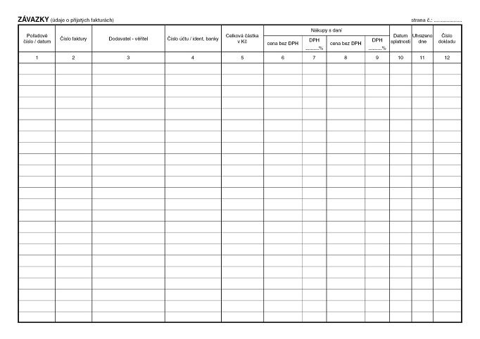 Kniha závazků A4 (kniha přijatých faktur, oboustranná) / ET340 / Baloušek tisk