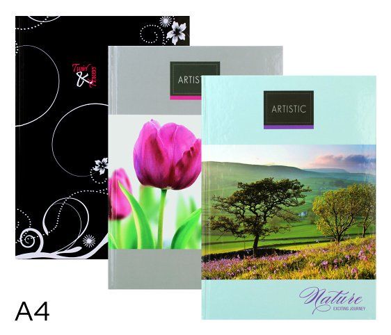 Šitá záznamová kniha - z kvalitního bezdřevého papíru- obálka z tvrdého kartónu, potištěná různými barevnými motivy a potažená laminem- mix motivů- formát: A4- počet listů: 100l- vzor: čtvereček- gramáž: 60g