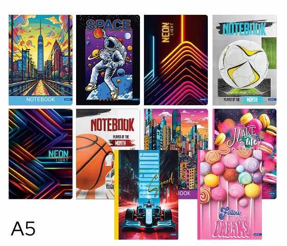 Obálka z tvrdé lepenky- formát: A5- počet listů: 96- gramáž listů: 70g/m2 - vzor: linka- mix motivů