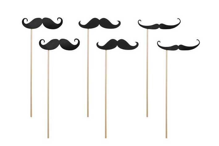 Rekvizity knírek jsou vytištěny a vyřezány z kvalitního papíru a přichyceny na dřívku. Jsou vhodné na párty nebo oslavu.