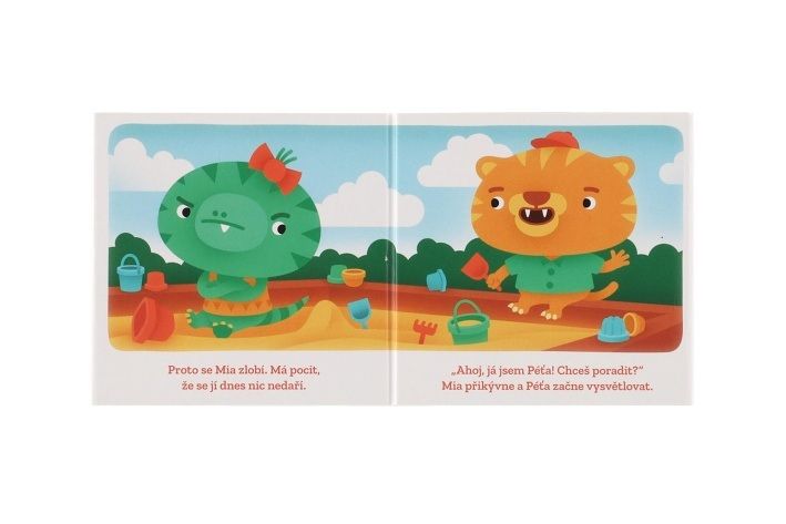 Tobi jde poprvé do školky a stydí se. Mia je na pískovišti, nejde jí udělat bábovka, a moc se zlobí. Malí dinosauři zažívají stejné problémy a situace, s nimiž se musí čas od času popasovat i všechna lidská mláďata: bojí se, stydí se, jsou smutné, cítí vztek anebo se jim třeba vůbec nic nechce. První ze série autorských leporel Kamarádi z pravěku o emocích a sociálních interakcích. Pro děti od 1 roku.