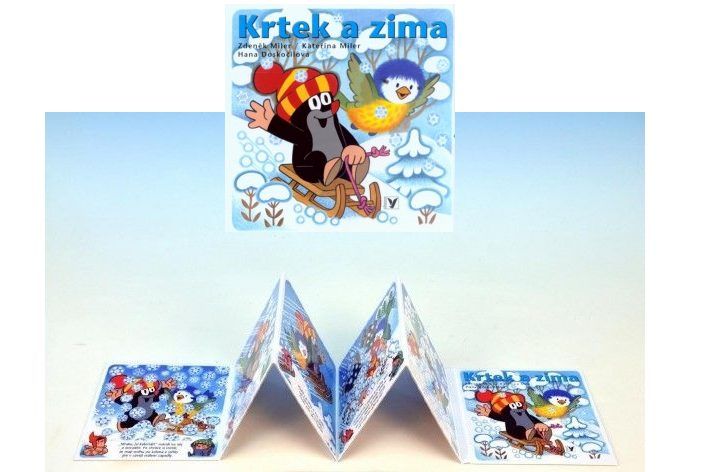 Krásné dětské leporelo Krtek a zima. Konečně je tu zima! řekl si Krtek a vytáhl sáňky. Ale co to? Bílo je všude, ale sníh to není, jen jinovatka. Copak se dá na jinovatce sáňkovat? Na obloze je jen jediný mráček, mráček chudinka, z toho chumelit nebude, postěžoval si Krtek. Ale když se Krtek se sýkorkou postarali, aby se mráček napil vody, mráček rostl, mohutněl, až se z něj začaly sypat vločky, jedna pěknější než druhá. A sníh se sypal a sypal, až jim sáňky v závěji téměř zapadly. Teď jim teprve začala sáňkovačka a koulovačka a ty pravé zimní radovánky!