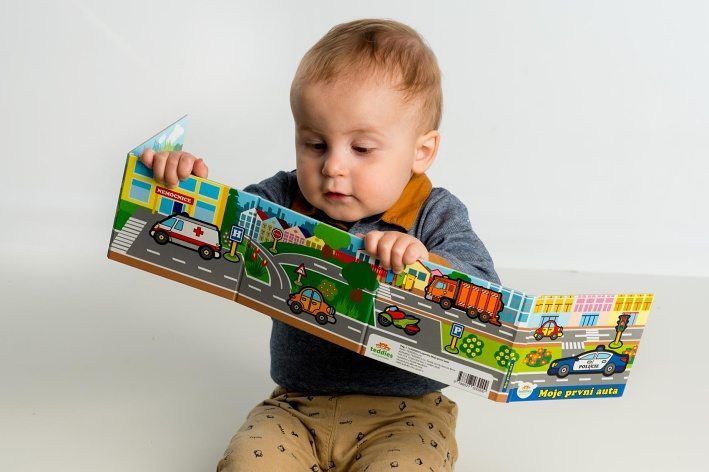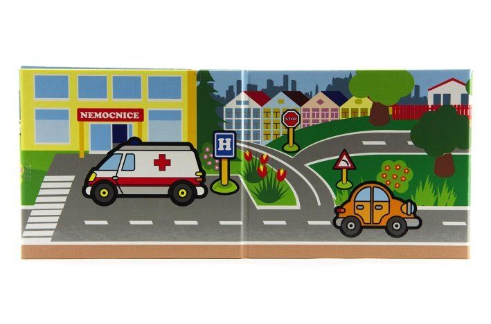 Leporelo pro malé děti s obrázky aut, ve kterém se seznámí s auty jezdícími na silnici. S leporelem plným obrázků se okolní svět stane předmětem jejich zájmu a učení nových slov pro ně bude hrou.