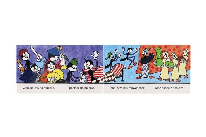 Klasické leporelo o malém mravenečkovi s ilustracemi Ondřeje Sekory. Dnes už klasické leporelo vypráví příběh o malém mravenečkovi, který je celý polámaný. Přijde ho léčit mravenčí doktor, ale nakonec mu pomůže přátelské pohlazení jeho kamaráda . Srozumitelné, přehledné a hravé leporelo nakreslil známý tvůrce Ferdy Mravence Ondřej Sekora.