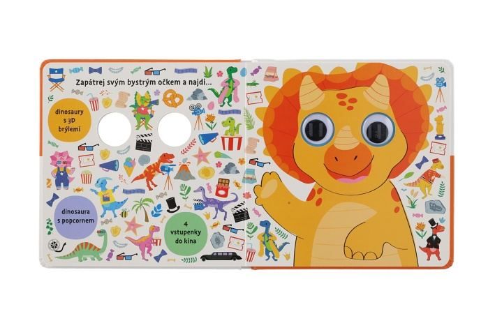 S touhle zábavnou knížkou se dá podniknout přímo detektivní pátrání mezi dinosaury! Hledání všem malým čtenářům zpříjemní postavičky s pohyblivýma očima, které najdou na každé stránce.