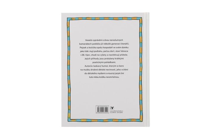 Veselá vyprávění o dvou nerozlučných kamarádech potěšila již několik generací čtenářů. Pejsek a kočička spolu hospodaří ve svém domku jako lidé: myjí podlahu, pečou dort, slaví Vánoce i 28. říjen, chodí na výlety a navštěvují přátele. Jejich příhody jsou proloženy krátkými poetickými pohádkami. Autorův laskavý humor, kterým si bere na mušku drobné dětské nectnosti, jeho vcítění do dětského myšlení a krásný vroucný jazyk tvoří tuto milou knížku nesmrtelnou.