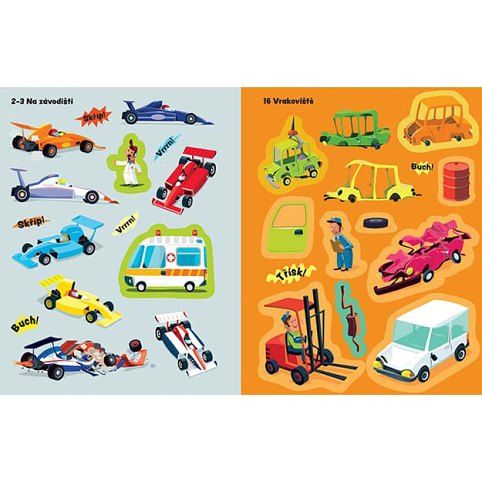 Samolepková knížka obsahuje 16 barevných stran a 8 stran samolepek k dolepení.