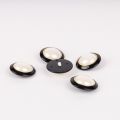 Knoflík v barvě slonové kosti s černým a zlatým okrajem, se spodním přišíváním.