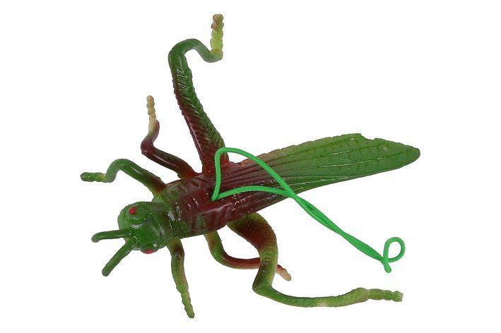 Doplněk ke karnevalové masce - gumovvá kobylka hnědo-zelené barvy. Můžete použít i jako dekoraci. Součástí je provázek na zavěšení.