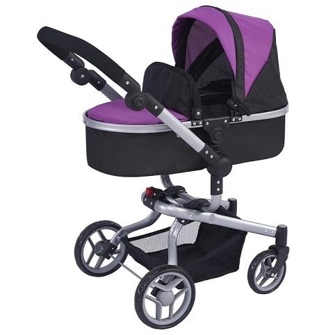 Modrofialový kočárek pro panenky. Vhodný pro děti od 3 let.