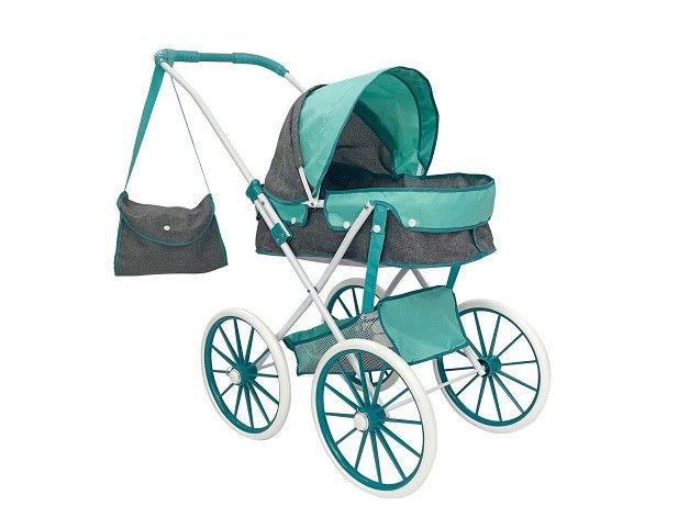 Kočárek hluboký s taškou pro panenky. Rozměry 66x39x74 cm. Návod součástí.