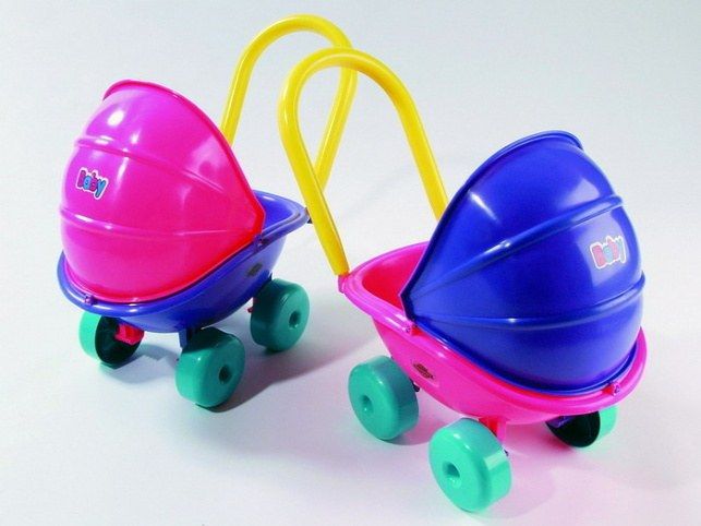 Kvalitní hluboký oválný kočárek z plastu ve tvaru vajíčka v holčičích barevných kombinacích, pro všechny malé maminky a jejich panenky - miminka. Vhodné od 3 let.