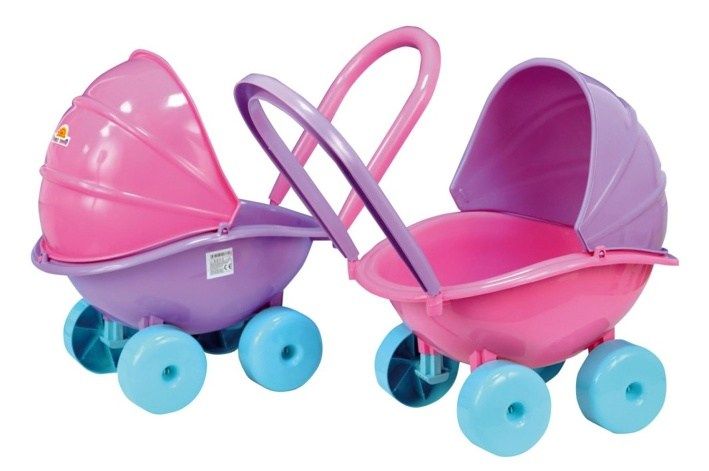 Kvalitní hluboký oválný kočárek z plastu ve tvaru vajíčka v holčičích barevných kombinacích, pro všechny malé maminky a jejich panenky - miminka. Vhodné od 3 let.