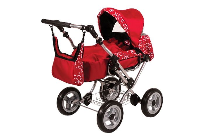 Luxusní kočárek s měkce odpruženým, stabilním podvozkem, koly o průměru cca 22 cm, kovovým košíkem, překlápěcí rukojetí s možností výškového nastavení v rozsahu cca 56-86 cm. Přenosná taška pro panenku nabízí délku cca 62 cm. Rozměr lůžka cca 63×26 cm. Nastavitelná opěrka zad a nohou pro využití kočárku ve sportovní verzi. Nastavitelná poloha stříšky. Taška na rukojet je součástí dodávky.Kočárek větších rozměrů pro starší holčičky (cca 3-7 let).