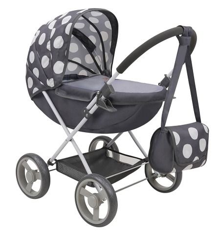 Kočárek je vhodný pro panenky do velikosti cca. 46 cm.
