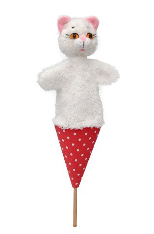 Kočka bílá 36 cm, kornoutový maňásek