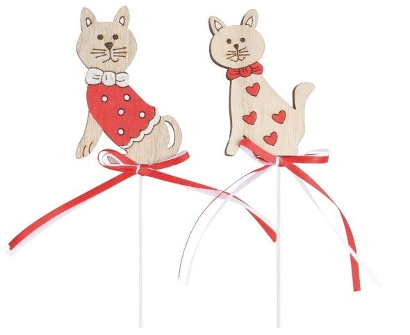 Kočka dřevěná 7,5 cm s mašlí + špejle