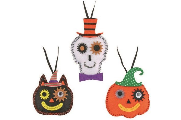 Kočka,dýně,lebka z filcu na zavěšení 8cm