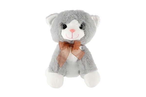 Kočka/Kočička sedící s mašlí plyš 23cm šedá v sáčku 0+