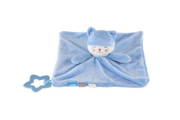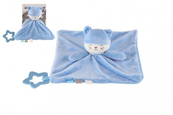 Kočka/Kočička usínáček chrastítko plyš 23x23cm modrá na kartě v sáčku 0+