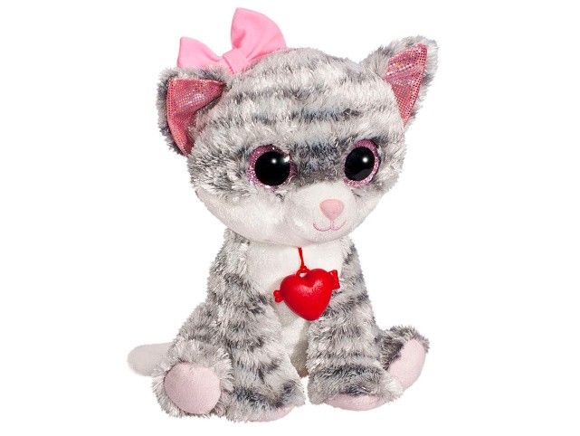 Kočka se srdíčkem plyšová šedá 21 cm