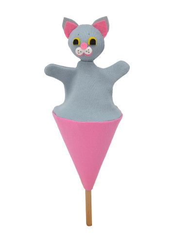 Textilní kornoutový maňásek, ovládaný dřevěnou tyčkou, kterou schováte celou postavičku do kornoutu. Hračka i dekorace.