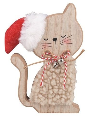 Kočka v červené čepici, dřevěná dekorace na postavení, 12 x 15,5 x 2,5 cm Roztomilá dřevěná kočka v červené zimní čepici rozveselí každý kout vašeho domova. Díky stabilnímu podstavci je ideální jako stojící dekorace na parapet, polici, komodu nebo sváteční stůl. Svým hravým vzhledem potěší malé i velké a vnese do interiéru příjemnou zimní náladu. Využití: Skvělá jako součást vánoční nebo zimní dekorace. Může být i milým dárkem pro milovníky koček a veselých dekorací. Vlastnosti: rozměry: 12 x 15,5 x 2,5 cmmateriál: dřevourčeno k postaveníTato veselá kočka v čepici přinese do vašeho domova radost a úsměv během celého zimního období.