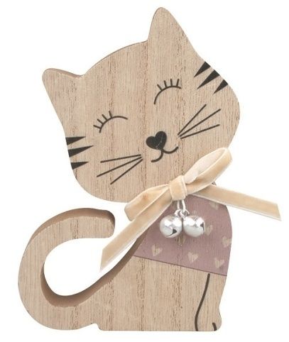 Dřevěná kočka v hnědém na postavení, 9 x 13 x 2 cm Tato dřevěná kočka v hnědém provedení je roztomilou a elegantní dekorací, která přinese do vašeho domova přírodní a útulnou atmosféru. S jejím jednoduchým a stylovým designem je ideálním doplňkem pro milovníky zvířat a přírodních dekorací. Využití: Skvělé pro postavení na stůl, poličku nebo komodu, kde se stane zajímavým a originálním prvkem v interiéru. Může být součástí zimní nebo celoroční výzdoby. Vlastnosti: rozměry: 9 x 13 x 2 cmmateriál: dřevobarva: hnědástabilní základna pro postaveníTato dřevěná kočka v hnědém provedení je ideálním dárkem nebo dekorativním kouskem, který zkrášlí váš domov.