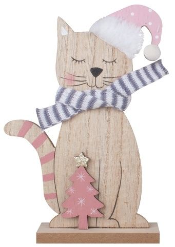 Dřevěná kočička v čepici s růžovými detaily Roztomilá kočička navodí příjemnou zimní atmosféru i ve vašem domově! Dřevěné dekorace jsou velmi oblíbené, univerzální a hodí se do každého interiéru.
