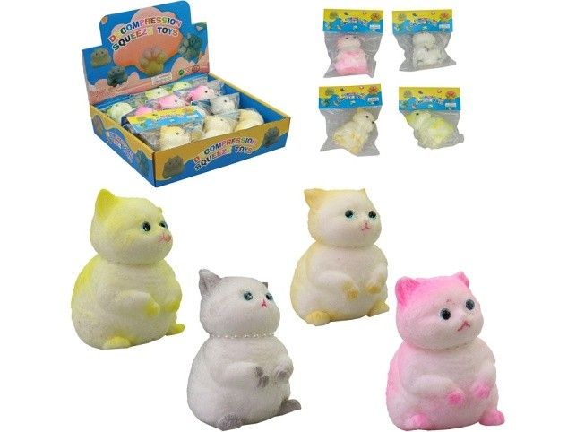 Tato sada obsahuje 12 koček v sáčku, každá o výšce 10 cm. Ideální pro děti od 3 let, každá kočka je vyrobena z gumy a dodávána v display boxu. Barevné varianty a různé druhy koček zajistí zábavu na dlouhou dobu. Rozměry boxu jsou 16 cm x 13 cm x 5 cm. Bez nutnosti baterií.